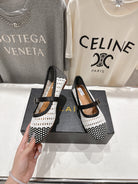 ALAIA MARY JANE FLATS white mix black woven calfskin pattent