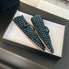 Alaia Strass Ballet Flats In Deep Blue Suede Stone 935185
