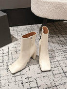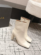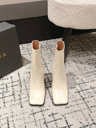 Alaia 2025 Square Toe High Heeled Ankle Boot Cream Calfskin 558664