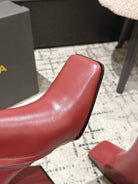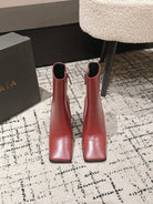 Alaia 2025 Square Toe High Heeled Ankle Boot Red Calfskin 558665