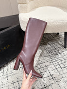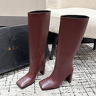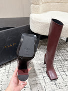 Alaia 2025 Square Toe High Heeled Boot Burgundy Calfskin 558670