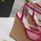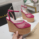 ALAIA WEDGE SANDAL IN BARBIE PINK MESH AND BEIGE RUBBER