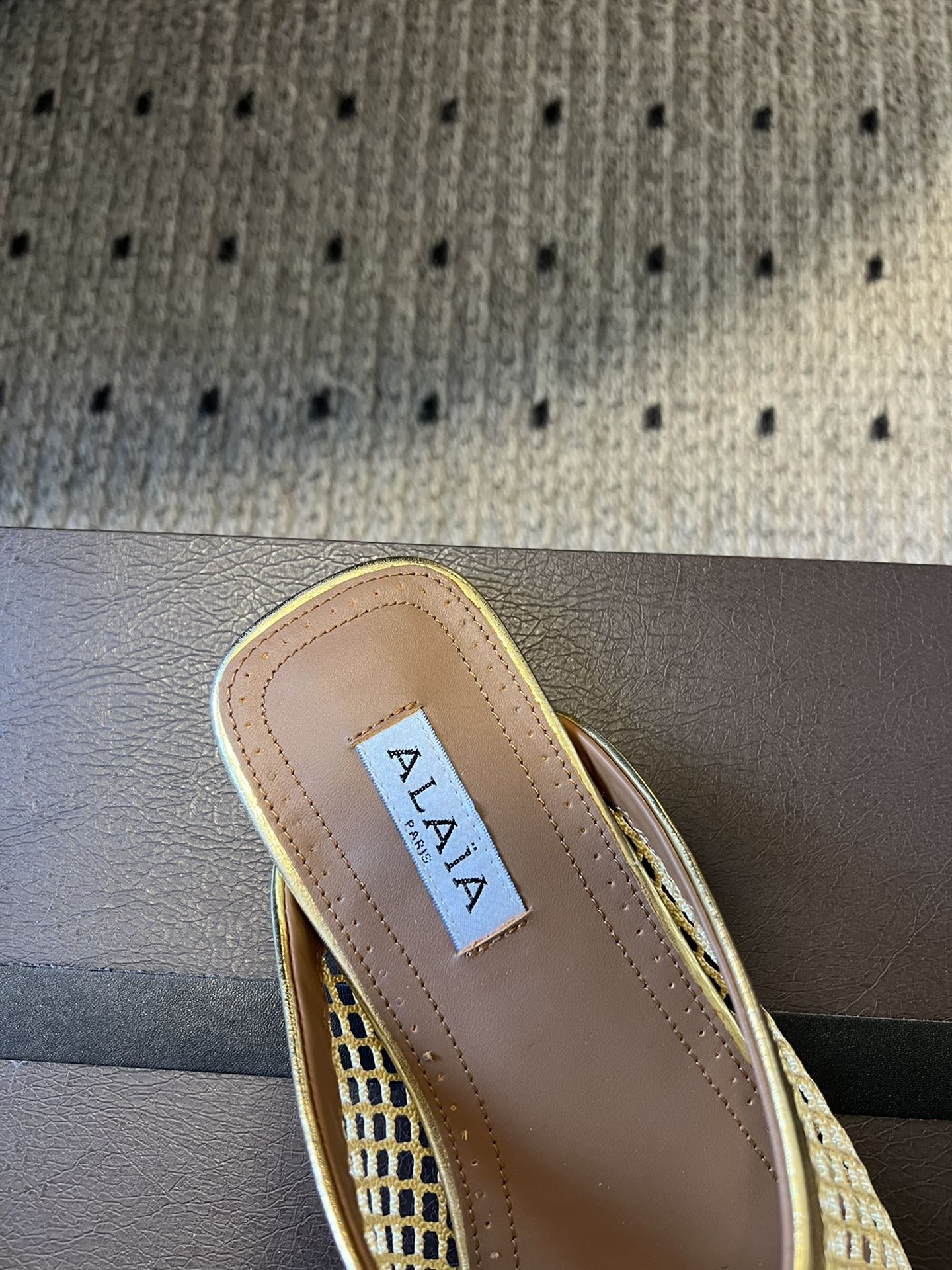 Alaia 25 Fishnet Flat Mules Gold Lampskin 303680