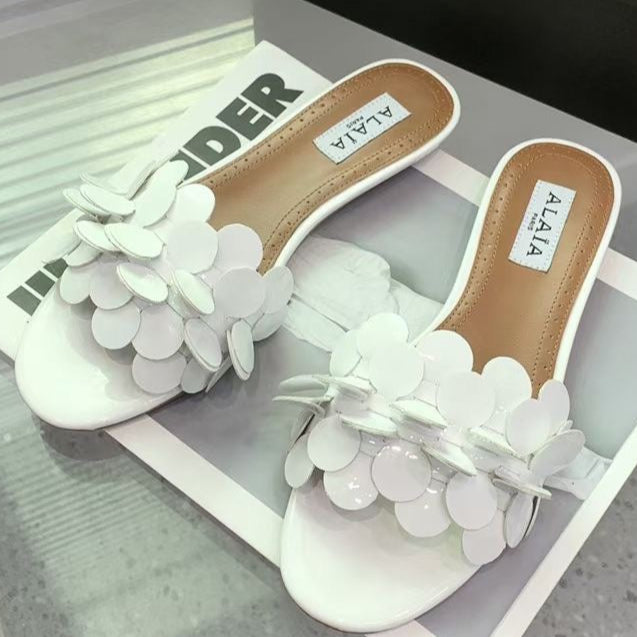 Alaia 25 Flower Slippers White Sheepskin 293161