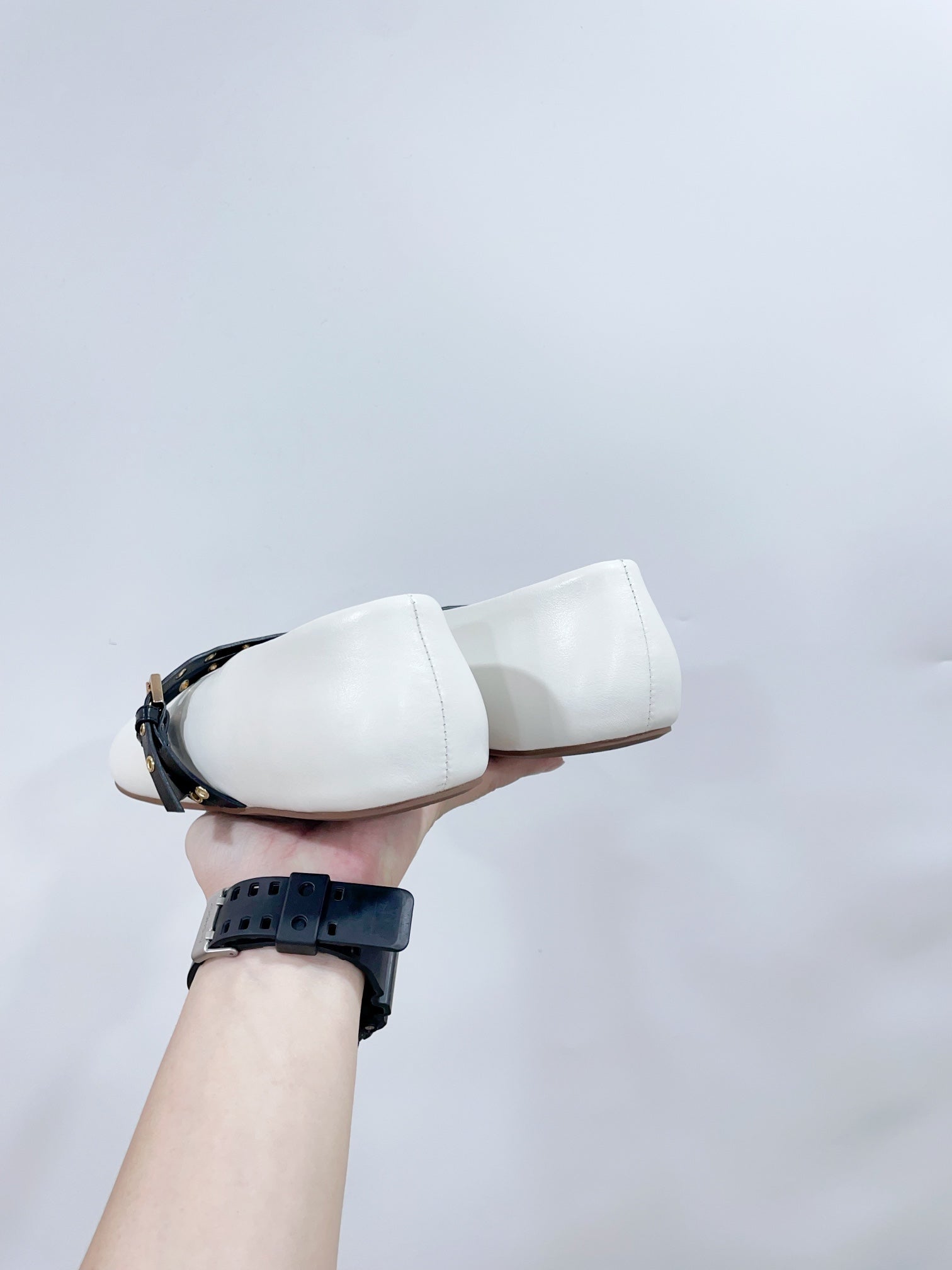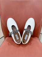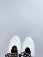 ALAIA MARY JANE SHOES IN WHITE LAMBSKIN WITH GOLD HARDWARE