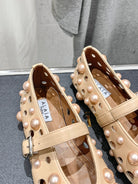 ALAIA PEARL MARY JANE SHOES IN BISQUE BEIGE LAMBSKIN