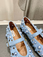 ALAIA PEARL MARY JANE SHOES IN LIGHT BLUE LAMBSKIN