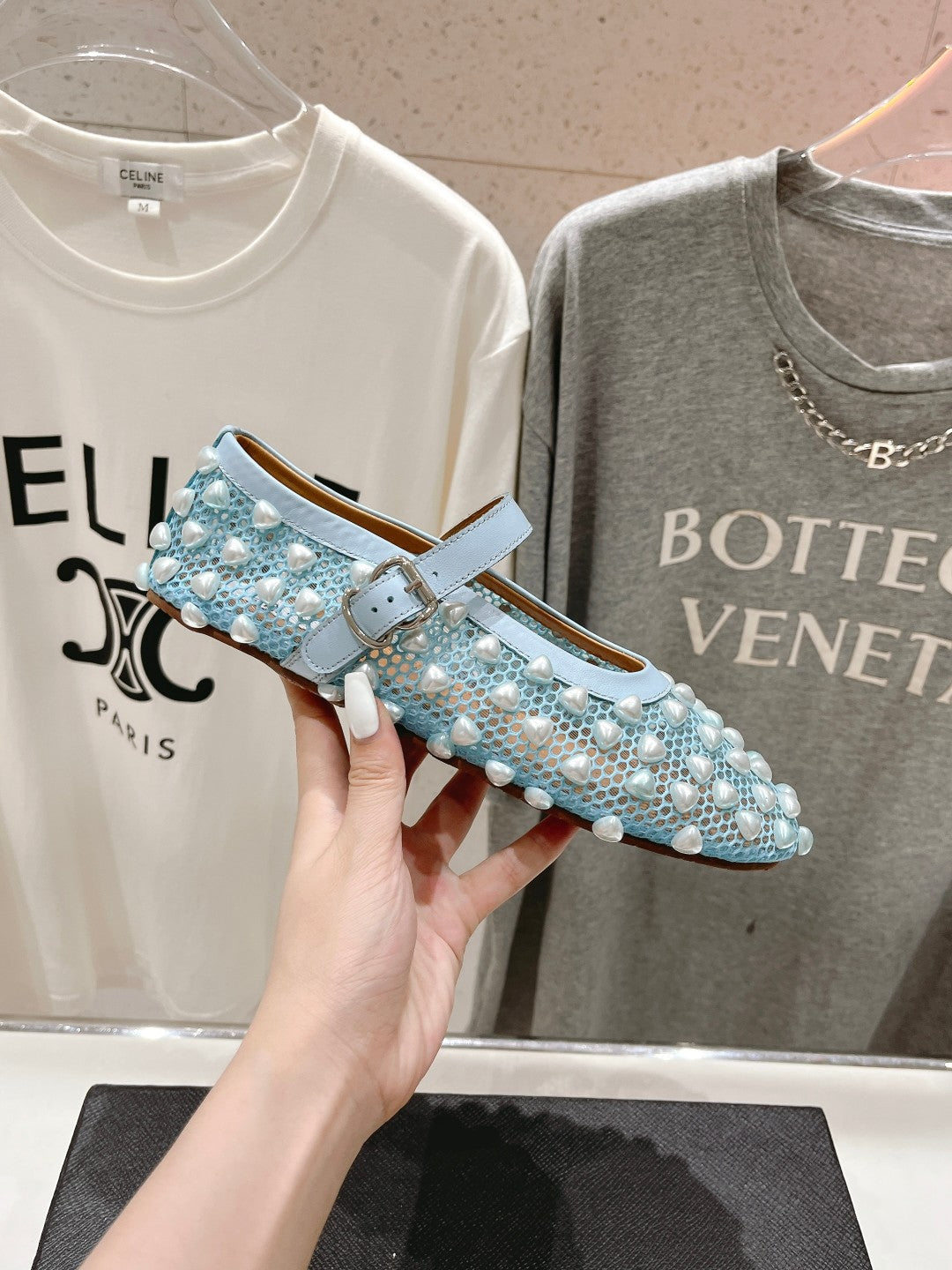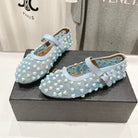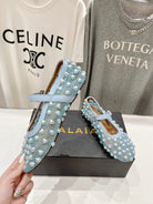 ALAIA PEARL MARY JANE SHOES IN LIGHT BLUE MESH AND CALFSKIN