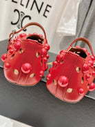 ALAIA PEARL MARY JANE SHOES IN ROSE RED LAMBSKIN
