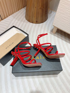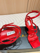 ALAIA THREE-STRAPS HIGH HEEL SANDALS IN CHERRY RED PATENT LAMBSKIN
