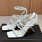 ALAIA THREE-STRAPS HIGH HEEL SANDALS IN WHITE PATENT LAMBSKIN