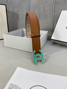 CC BELT 3.0CM BUCKLE BLUE LEATHER BROWN