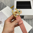 CC BELT 30MM BUCKLE GOLD DIAMOND LEATHER PINK