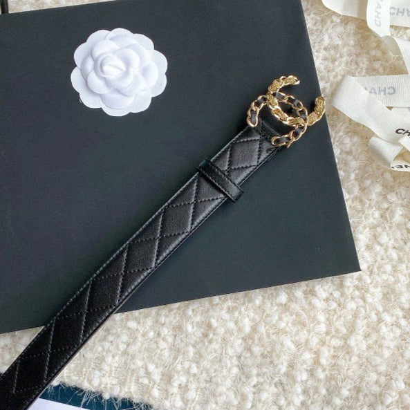 CC WOMEN'S BELT 3.0CM LEATHER BLACK CARO BUCKLE MULTICOLOR