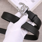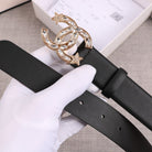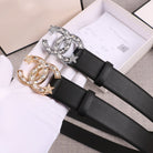 CC WOMEN'S BELT 30MM BUCKLE STAR DIAMOND LEATHER BLACK