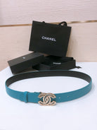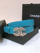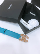 CHANEL BELT 3CM IN DODGER BLUE AND BLACK LAMBSKIN WITH GOLD HARDWARE