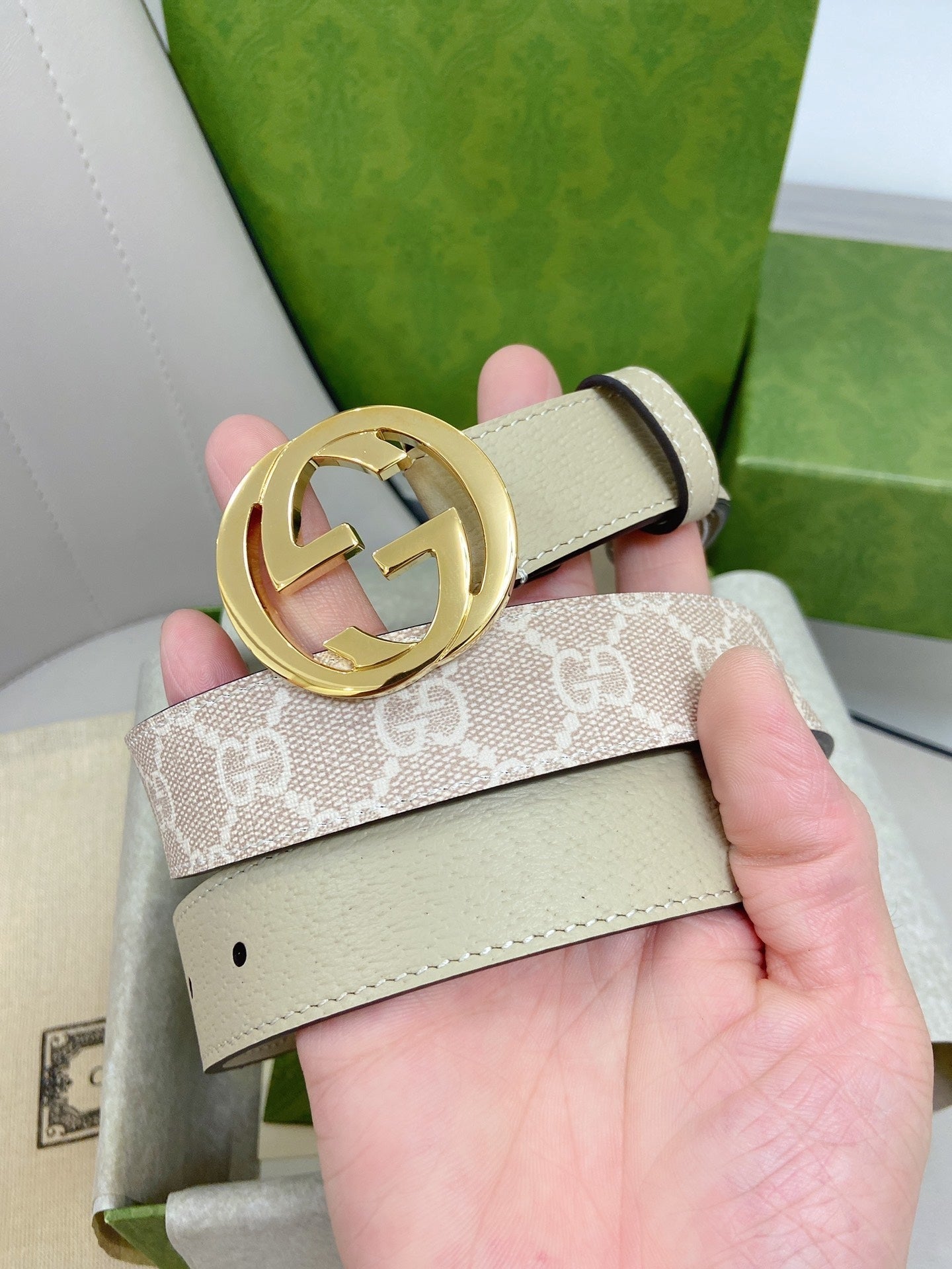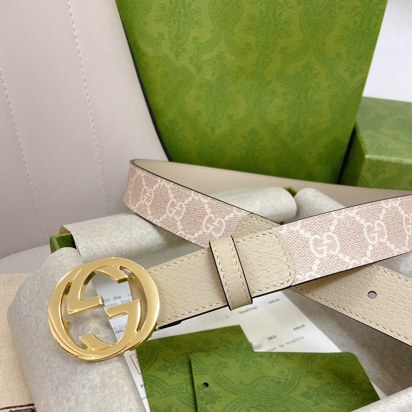GG BELT DOUBLE G BUCKLE PINK CANVAS