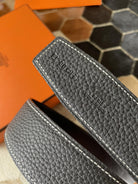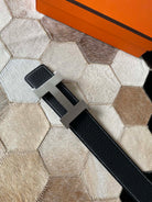 H CONTANCE BELT 38MM SILVER BUCKLE BLACK LEATHER