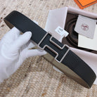 H TONIGHT BELT 38MM GOLD PRUSSIAN BLUE LEATHER
