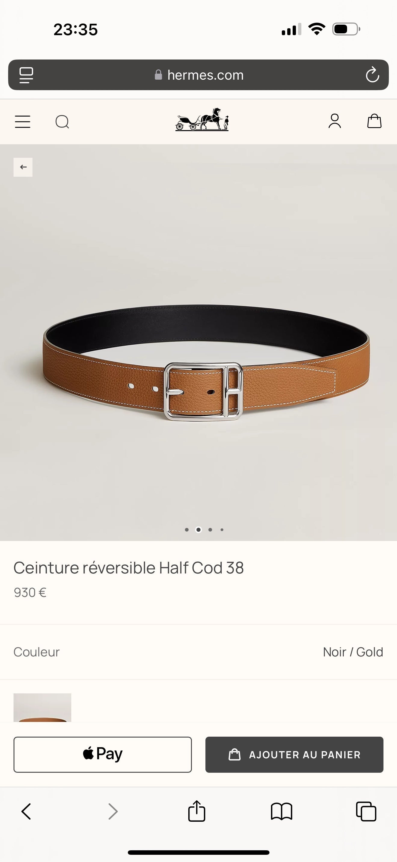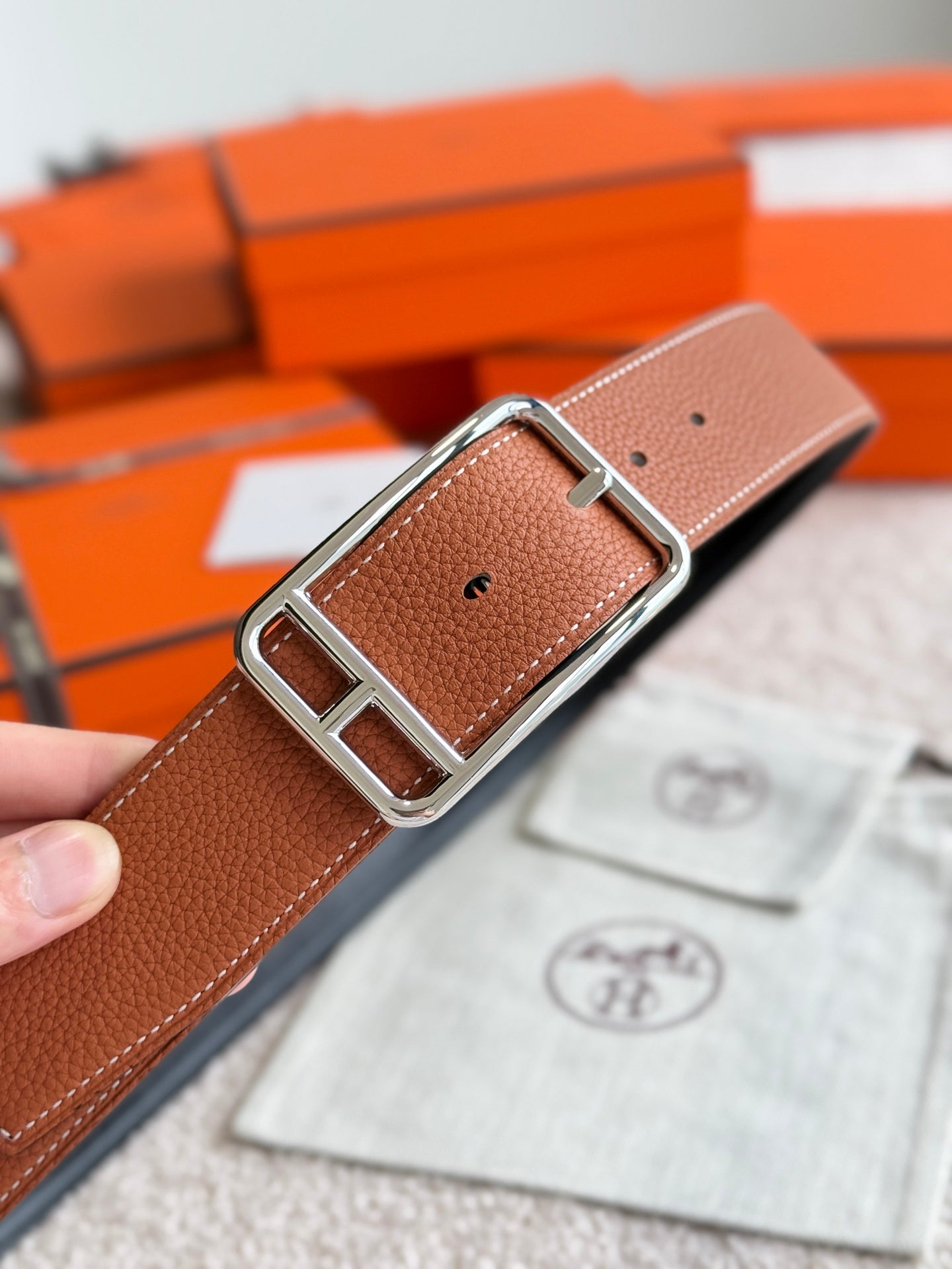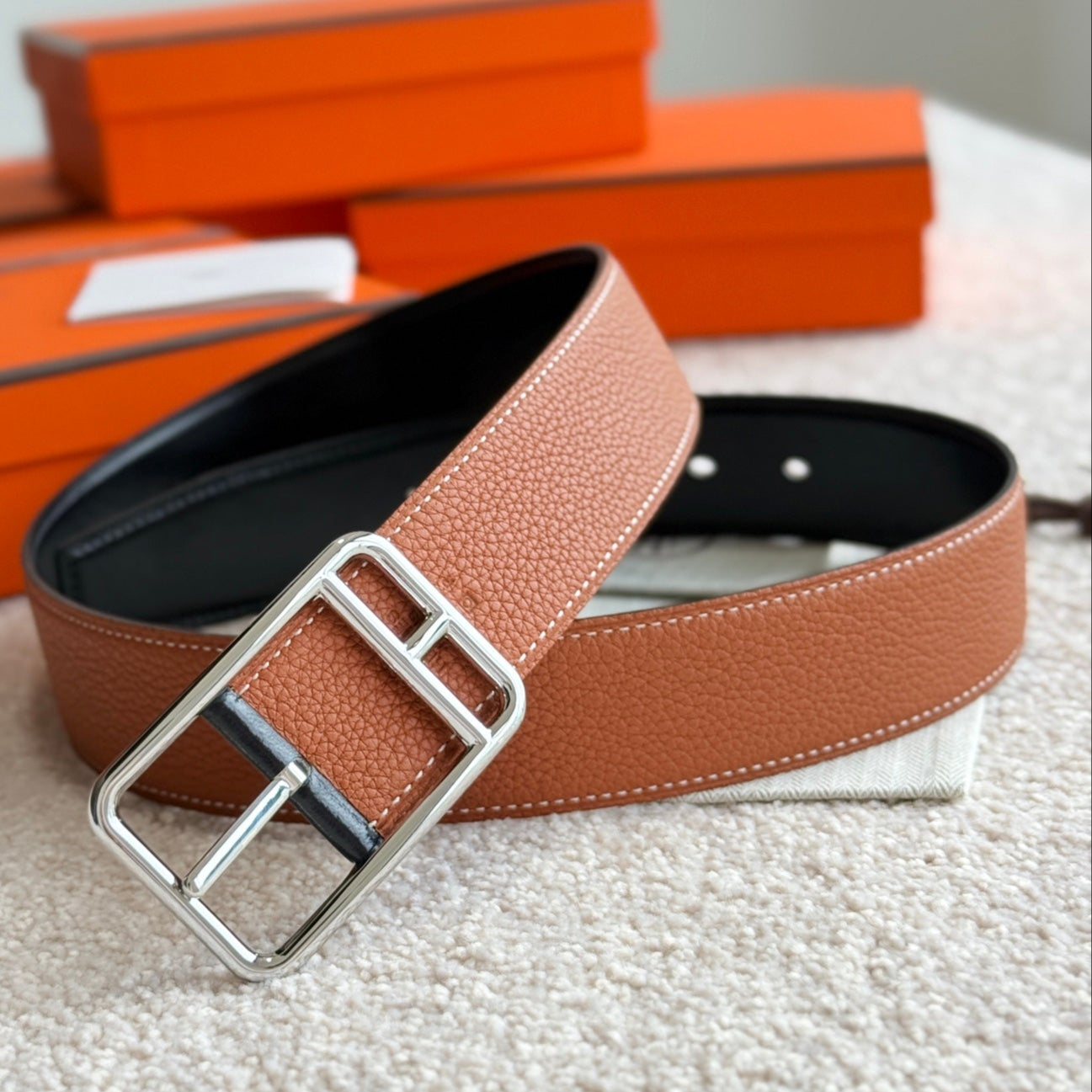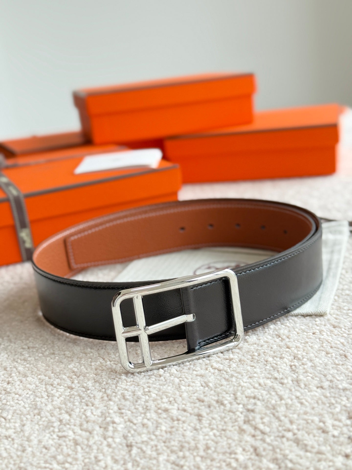 HM Half Cod Reversible 38mm Belt Black Brown Leather 188092