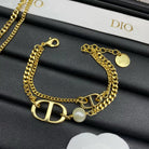 CD LOGO MOP GOLD DOUBLE CHAIN BRACELET