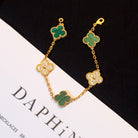 CLOVER 5 MOTIF MALACHITE DIAMOND PINK GOLD BRACELET