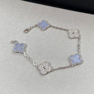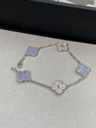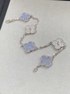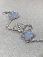 CLOVER 5 MOTIF SILVER CHALCEDONY DIAMOND BRACELET