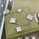 CLOVER 5 MOTIFS SIVLER WHITE MOP BRACELET