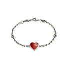 GG HEART AGED FINISH STERLING SILVER RED ENAMEL BRACELET