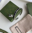 GG INTERLOCKING G ENAMEL CUFF BRACELET SILVER & BLACK