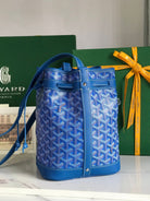 PETIT FLOT BUCKET BAG 22 IN SAPPHIRE BLUE GOYARDINE CANVAS AND LAMBSKIN TRIM