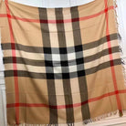 REVERSIBLE CHECK 140 CM WOOL SILK SCARF CAMEL BEIGE 408964