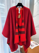 REVERSIBLE CHECK CASHMERE CAPE CHERRY RED AND BLACK 410134