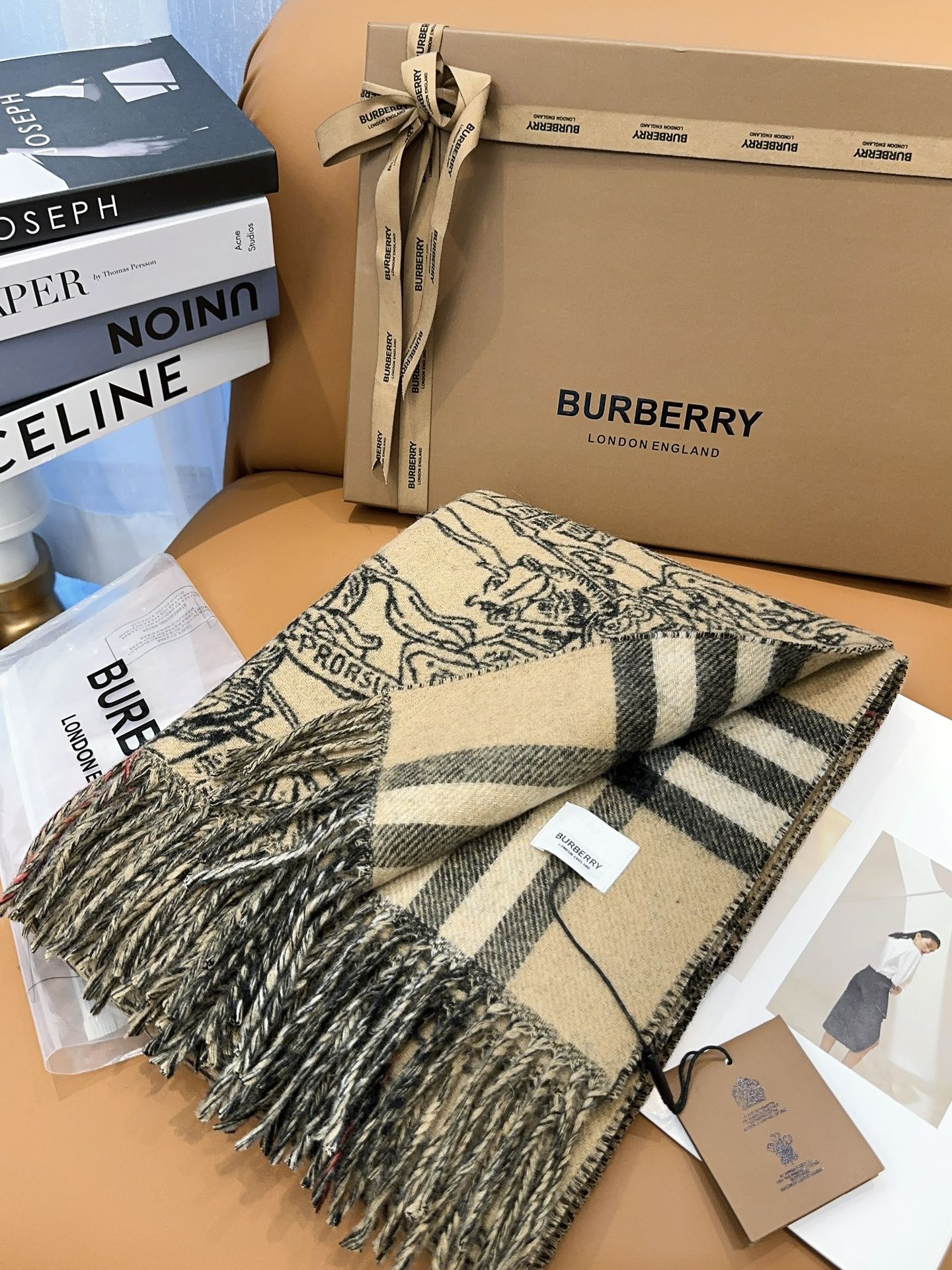 SCARF 210 CM IN CAMEL BEIGE MIX BLACK CASHMERE 408618