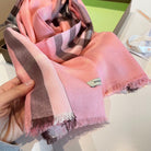WIDE CHECK CASHMERE SCARF 200 CM IN ROSE PINK CASHMERE 407325