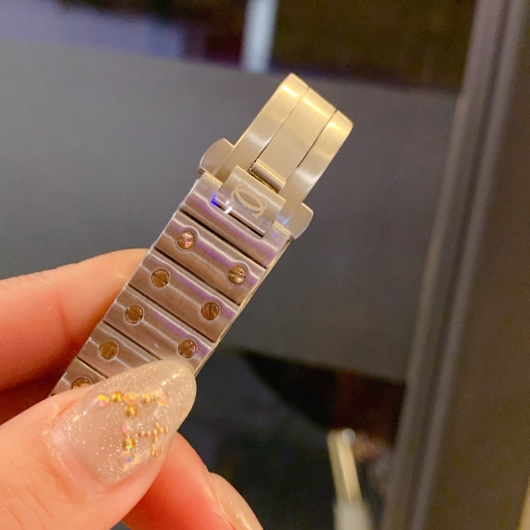Black Leather SANTOS DUMONT LADY SILVER CASE CROCODILE STRAP Dark Blue Leather SANTOS DUMONT LADY SILVER CASE CROCODILE STRAP Black Diamond Bezel SANTOS DUMONT LADY SILVER CASE CROCODILE STRAP