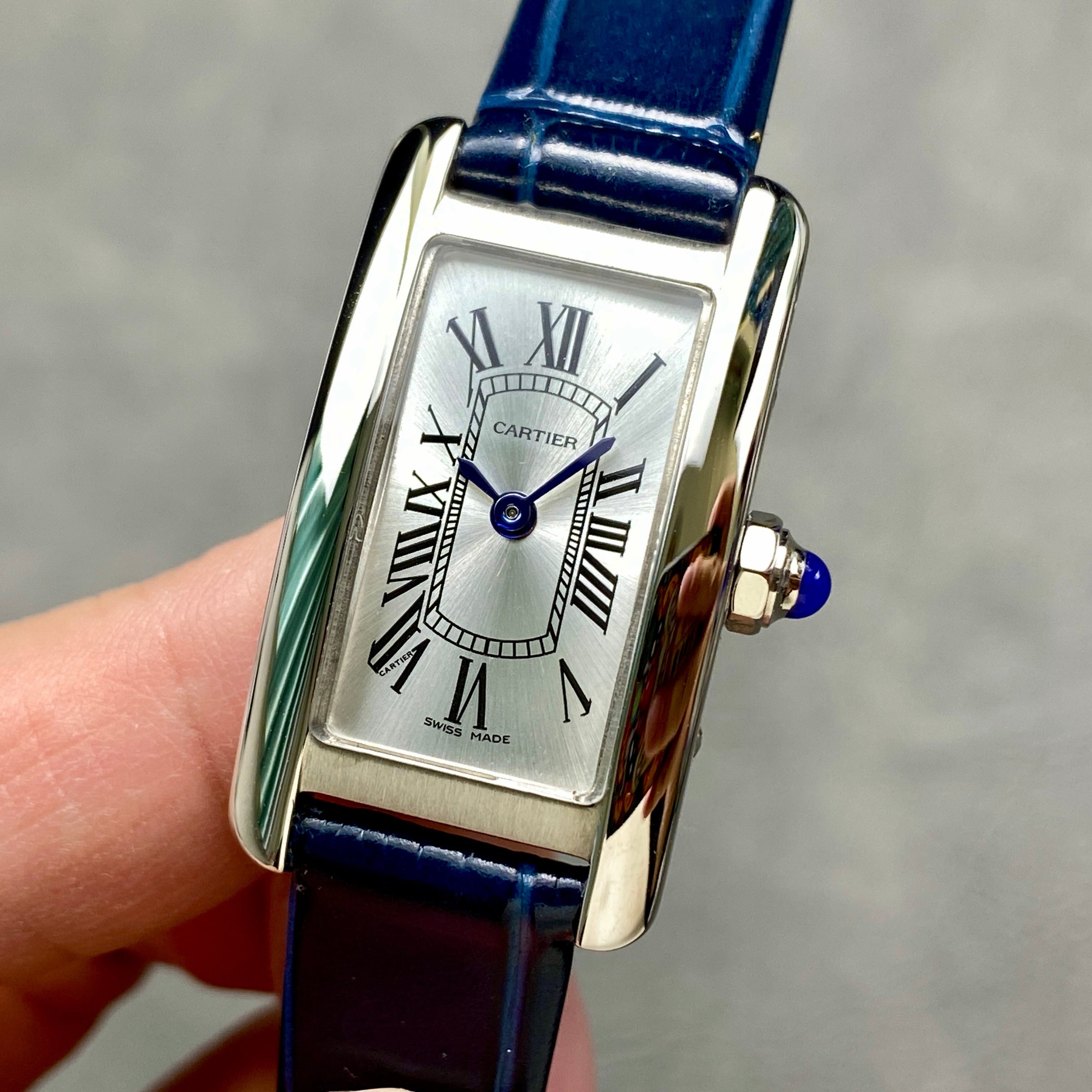 Tank Americane 20mm Silver Case Blue Leather Strap