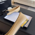 BALLET FLAT BEIGE CREAM CALFSKIN AND FABRIC