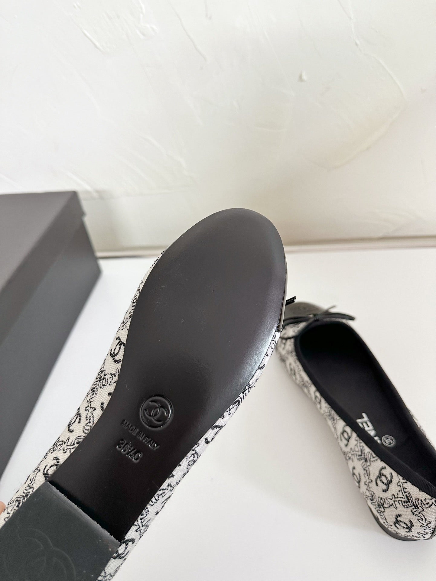 Ballet Flats White Cloth Black Patent Calfskin