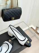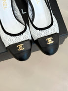 Chanel 25 Ballet Flat 50mm White Black Woven Lambskin 473053