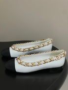 Chanel 25A Ballet Flats Big Chain Double C White Black Sheepskin 393819