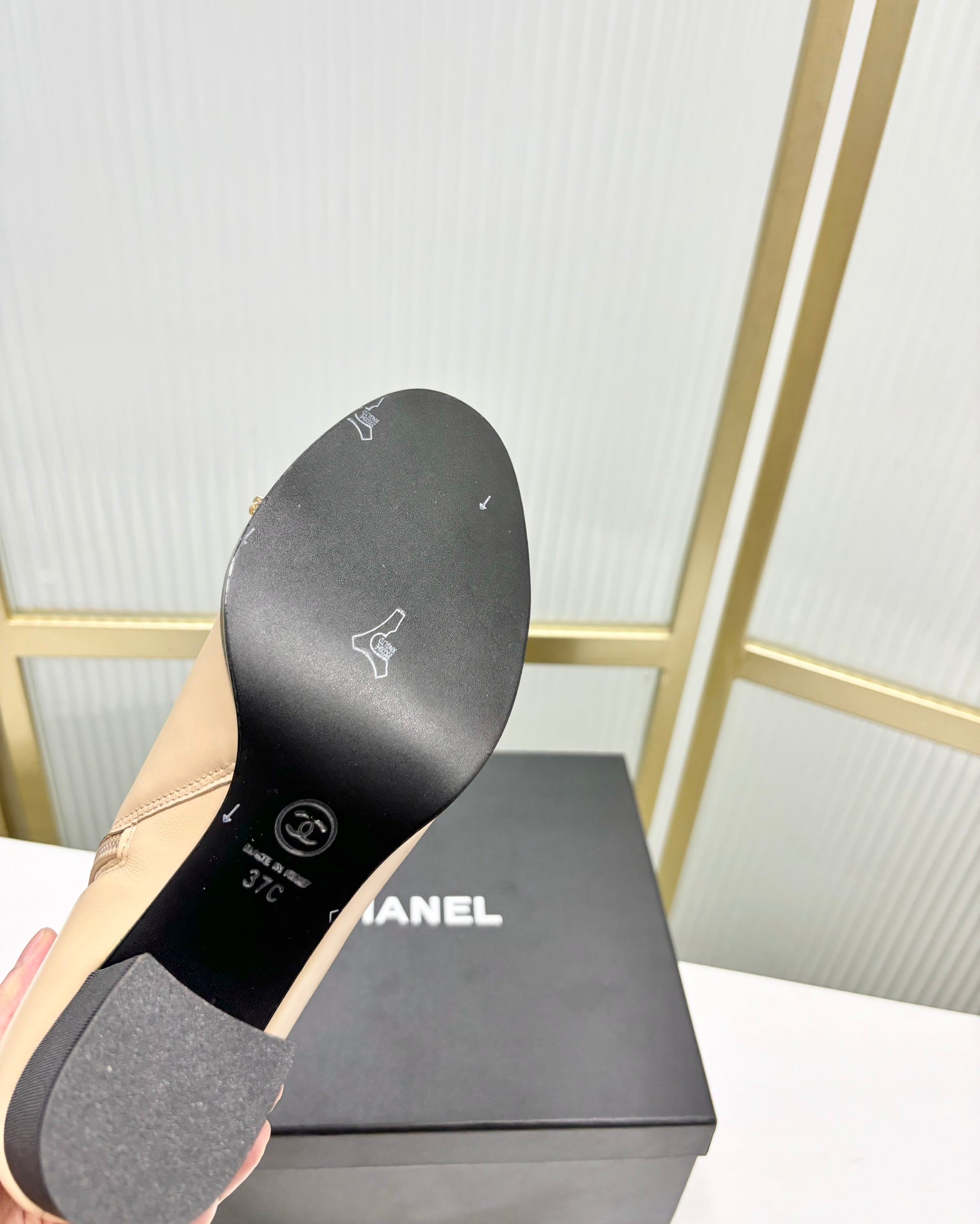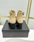 CC Ankle Boot 65 Beige Calfkin Black Grosgrain Leather Strap