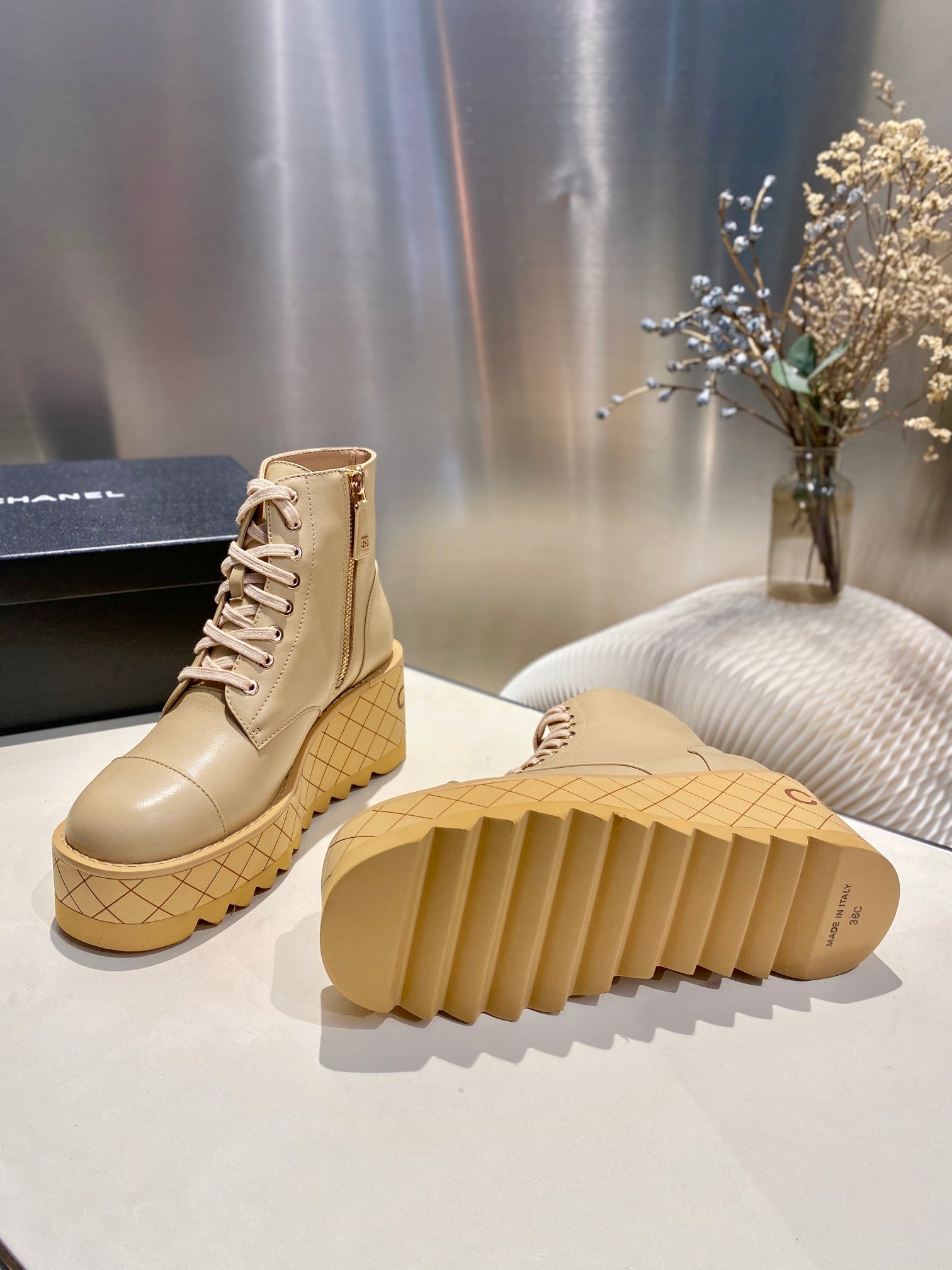 CC Ankle Boots 100m Beige Lambskin