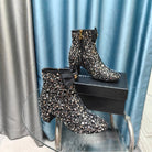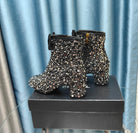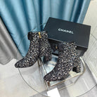 CC Ankle Boots Black Bow Tweed Sequin Beaded Fabric