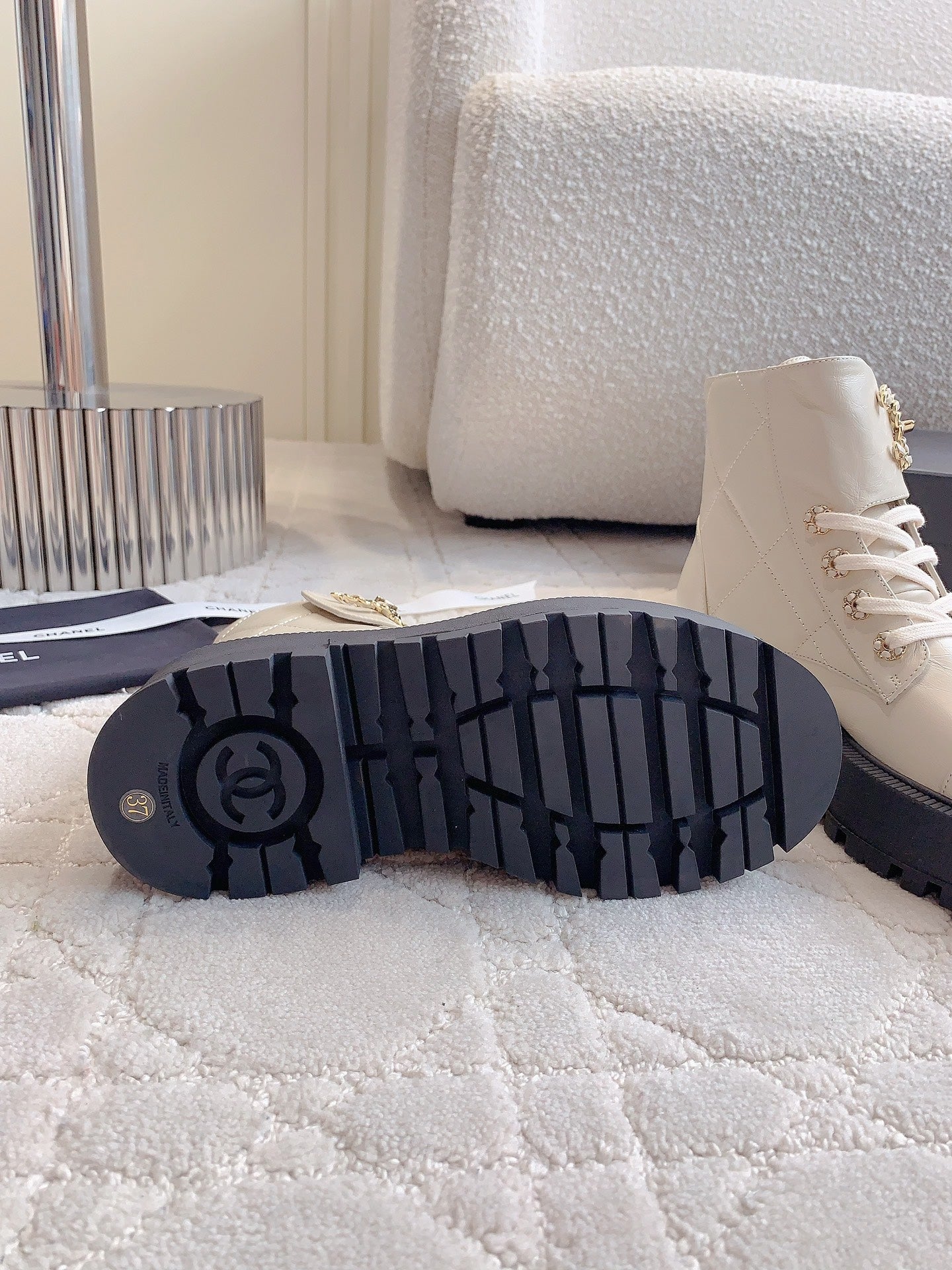 CC Ankle Boots In White Beige Wrinkled Calfskin 145489