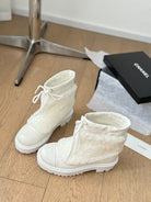 CC CHUNKY BOOTS IN WHITE SMOOTH FLEECE AND CALFSKIN