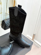 CC cowboy mid-calf boots black sheepskin suede 511984