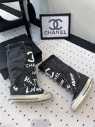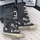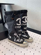 CC High-Top Canvas Boots Black White Denim Fabric 938046
