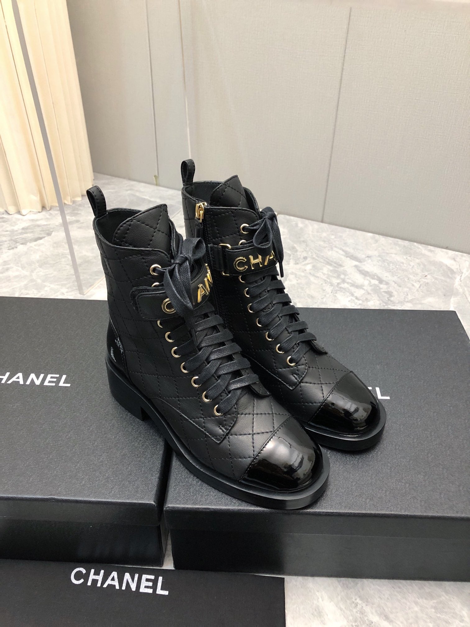 CC Short Boots 45mm In Black Quilted Lambskin And Glossy Cowhide 950042