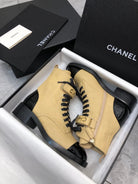 CC Short Boots 45mm In Light Yellow Mix Black Quilted Lambskin And Glossy Cowhide 950039